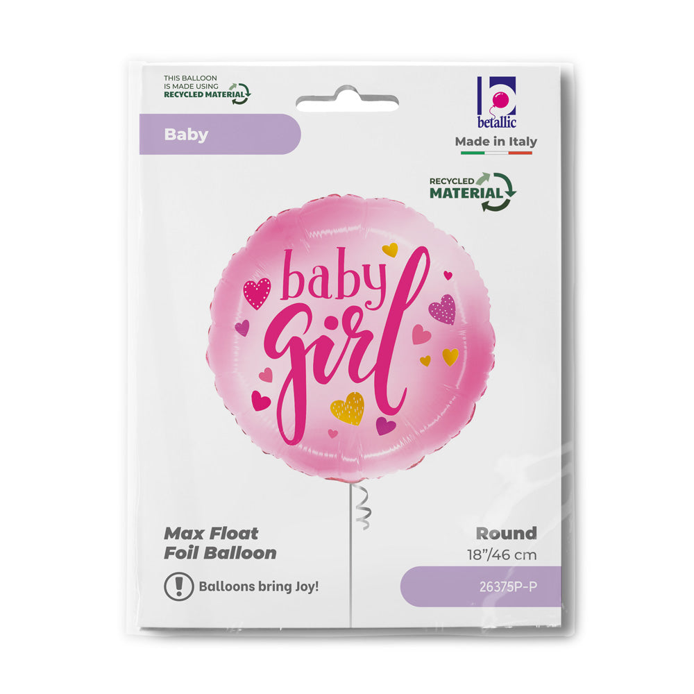 R18 Baby Girl Pink Hearts party balloon